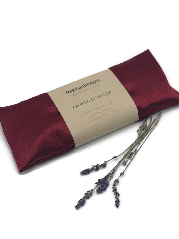 It comes with a SATIN cover which makes it easy to remove and wash. To hand-wash, the Eye Pillow covers it in warm or cold water with mild detergent and lays flat to dry and warm iron it. Bridesmaid Gift, Wedding Party Gift, Self Care for Bride, Relaxation Gift for Bride, Bride Gift Wine Color Silky Satin Lavender Eye Pillow