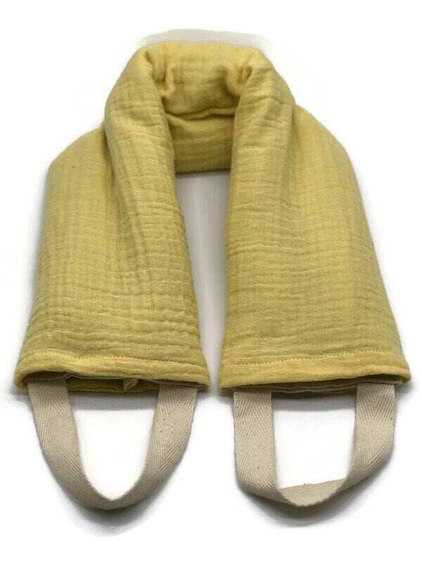 Chill in the freezer for a calming soothing cold pack that will help relieve inflammation, a fever, the pain of a sunburn, or a hot flush. Yellow color Neck wrap for pain.